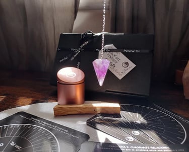 Trabajo con el Péndulo Hebreo Utilizaremos el péndulo hebreo para acceder a tu sabiduría intuitiva y obtener respuestas a preguntas específicas que puedan surgir durante nuestras sesiones.